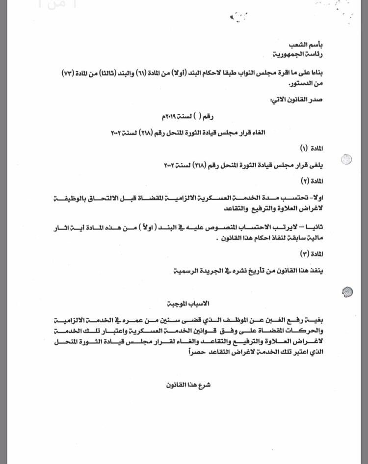 نص قانون احتساب مدة الخدمة العسكرية الإلزامية