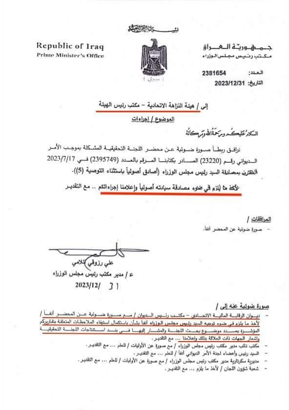 السوداني يحيل محافظ المثنى إلى هيئة النزاهة وديوان الرقابة المالية.. وثيقة