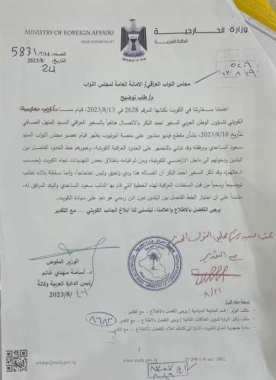 وثيقة.. الكويت تشكو نائبًا في البرلمان العراقي وتتهمه بـ"التعدي" على سيادتها
