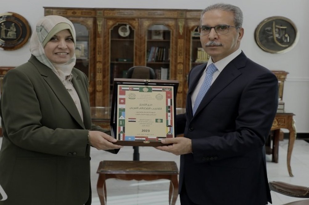 رئيس مجلس القضاء الأعلى يتسلم درع التميز للتدريب القضائي العربي