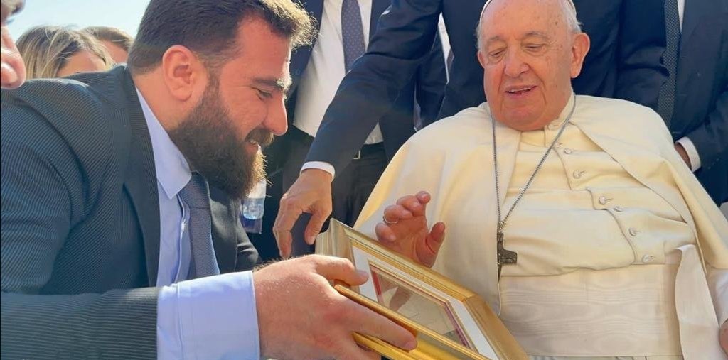 الكلداني يلتقي البابا في الفاتيكان ويسلمه هدية من تراث أرض الرافدين