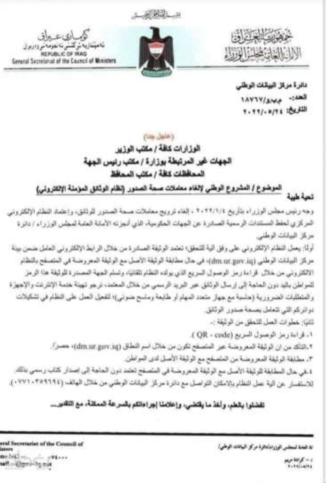 توجيه من الكاظمي يخص معاملات صحة الصدور للوثائق