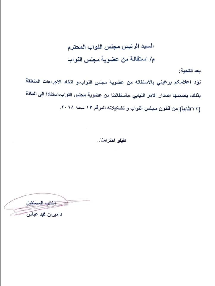 نائب يستقيل من مجلس النواب