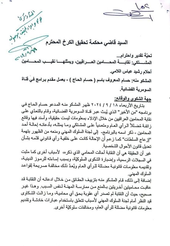 نقابة المحامين تقاضي احد مقدمي البرامج الحوارية لهذا السبب