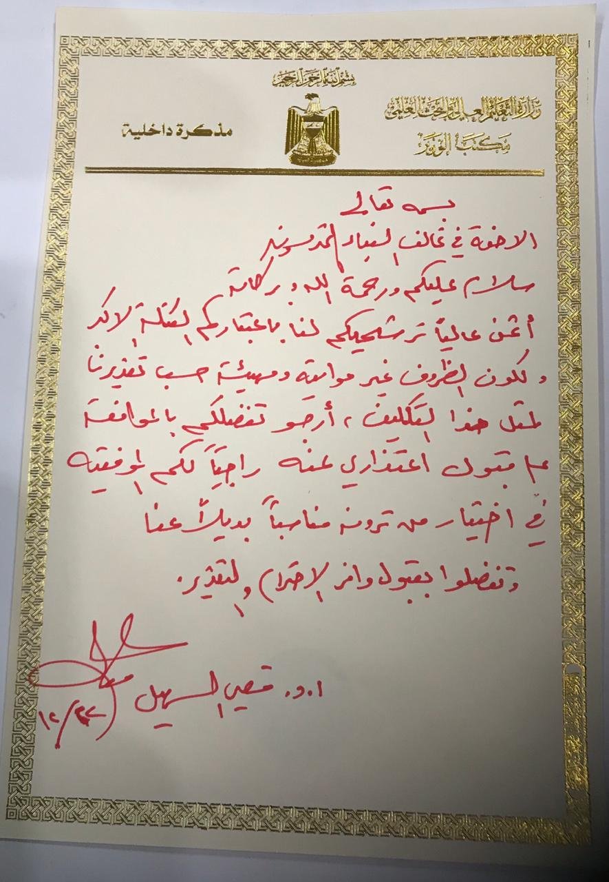 بالوثيقة.. قصي السهيل يعتذر عن تكليفه برئاسة الوزراء