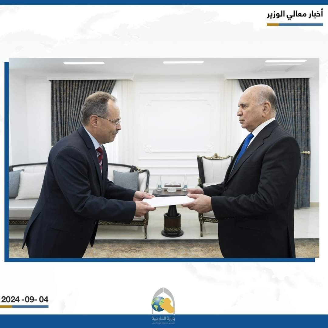 وزير الخارجية يتسلم أوراق اعتماد سفير سويسرا في بغداد