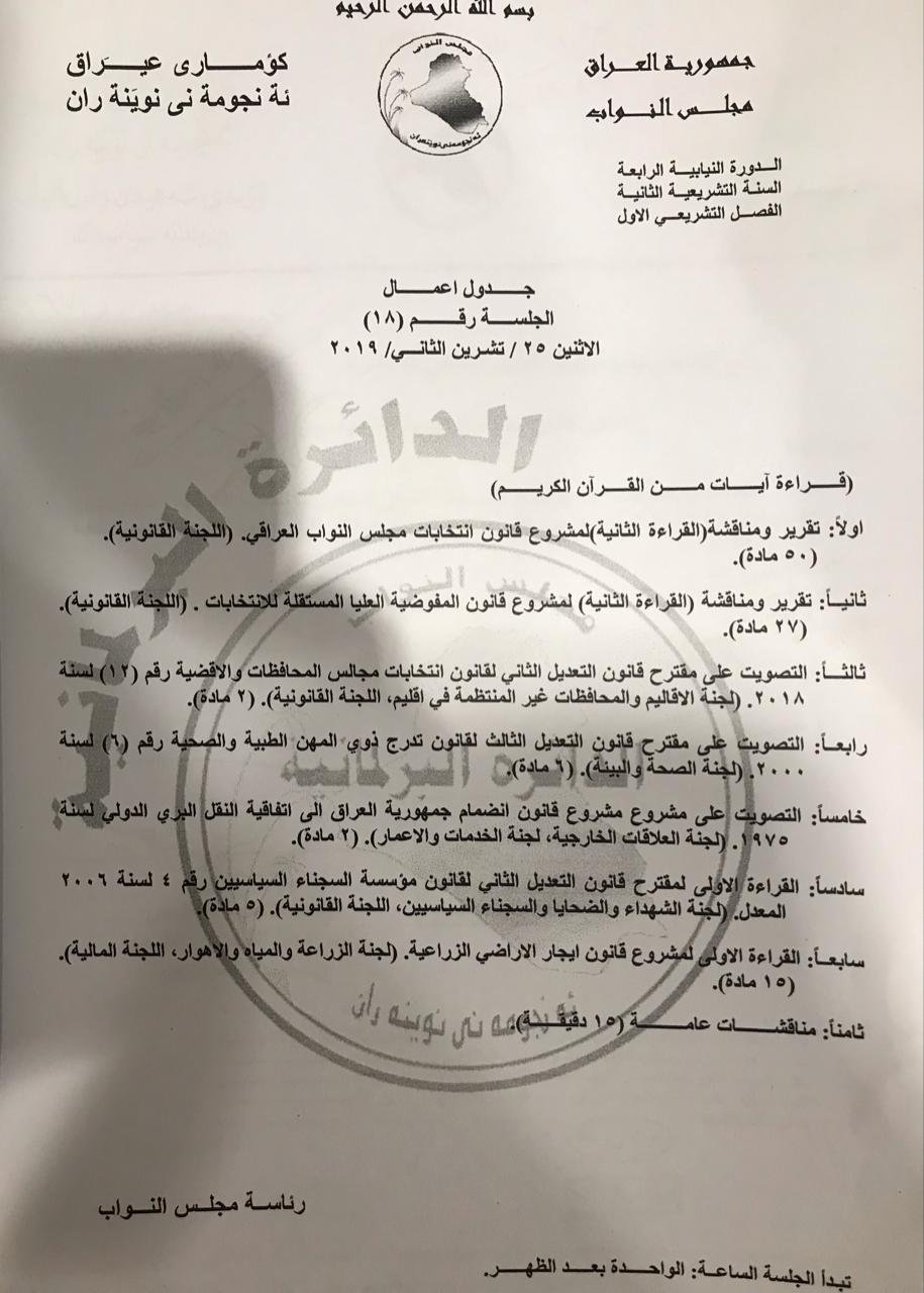 جدول أعمال جلسة البرلمان اليوم