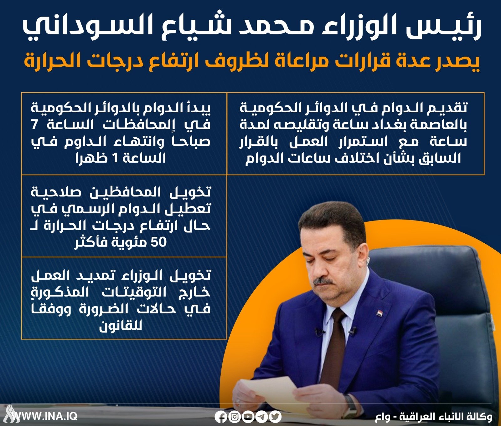 إنفوغراف.. رئيس الوزراء يصدر عدة قرارات مراعاة لارتفاع درجات الحرارة