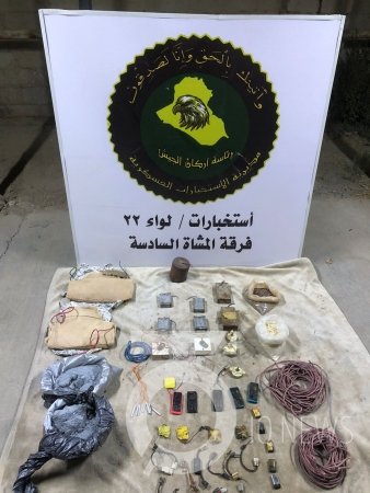 تنفيذاً لتوجيهات الفريق الركن قائد عمليات بغداد تواصل القطعات الأمنية وبجهد استخباري مكثف، وبتنسيق عال المستوى مع قسم استخبارات وأمن عمليات بغداد، وبعد ورود معلومات استخبارية تفيد بوجود كدس من المواد المتفجرة والاعتدة وأدوات مساعدة في عمليات تفخيخ تعود لإرهابي مقبور، وتشير المعلومات كذلك انه لدى عناصر مفرزته الإرهابية نية لنقل الكدس وتغيير مكانه، على الفور تحركت قوة من اللواء (22) فرقة المشاة السادسة وباشراف قائد الفرقة وبأمرة ضابط استخبارات اللواء وبالتعاون مع المواطنين، تم ضبط الكدس الذي احتوى على: حزامين ناسفين معدين للتفجير وخمسة عبوات ناسفة مختلفة الأنواع وعبوتين لاصقتين مع (8) كغم من نترات الامونيا ومادة الـ(C4) و(8) قداحات للتفجير وخمسة أجهزة موبايل مسلكة تستخدم في عمليات التفجير ودوائر كهربائية وكمية من الكرات الحديدية(صجم).
