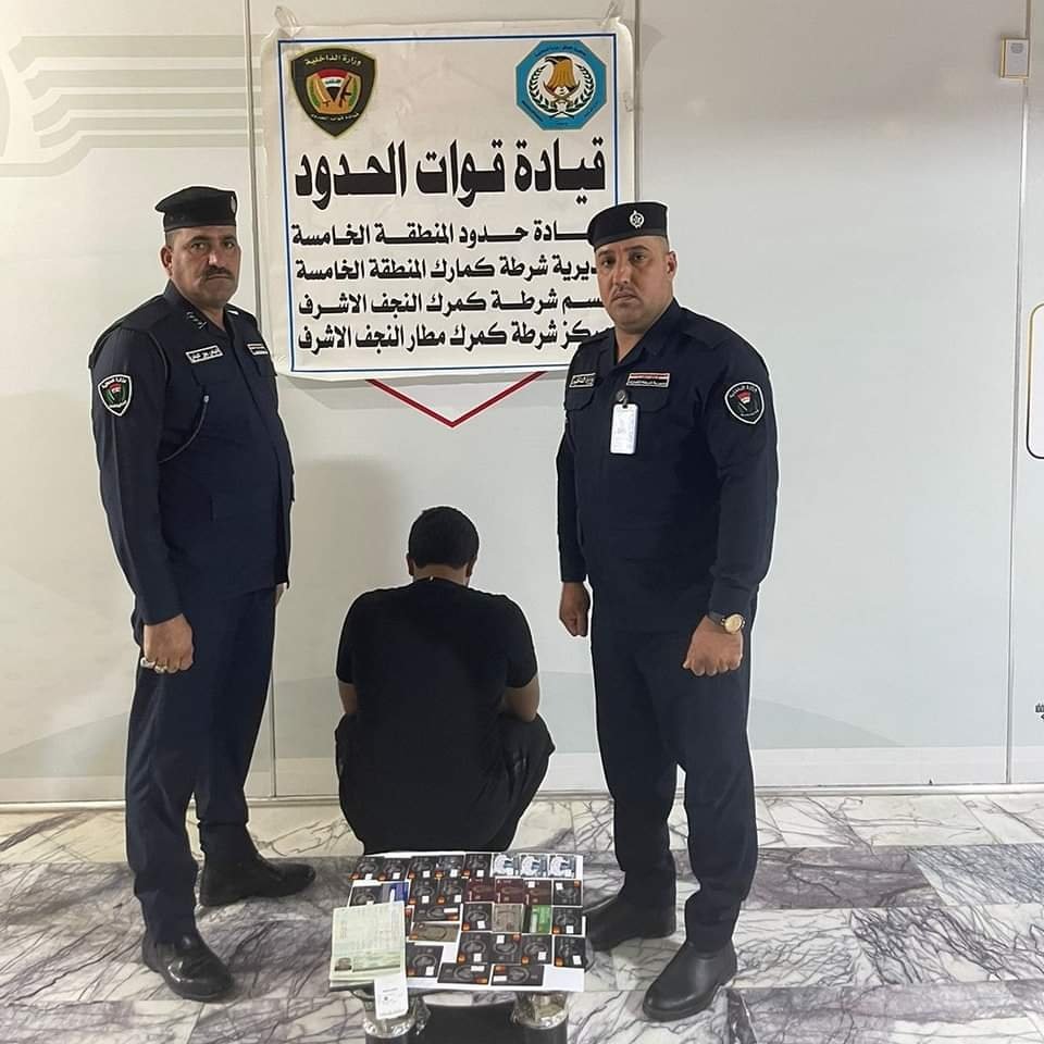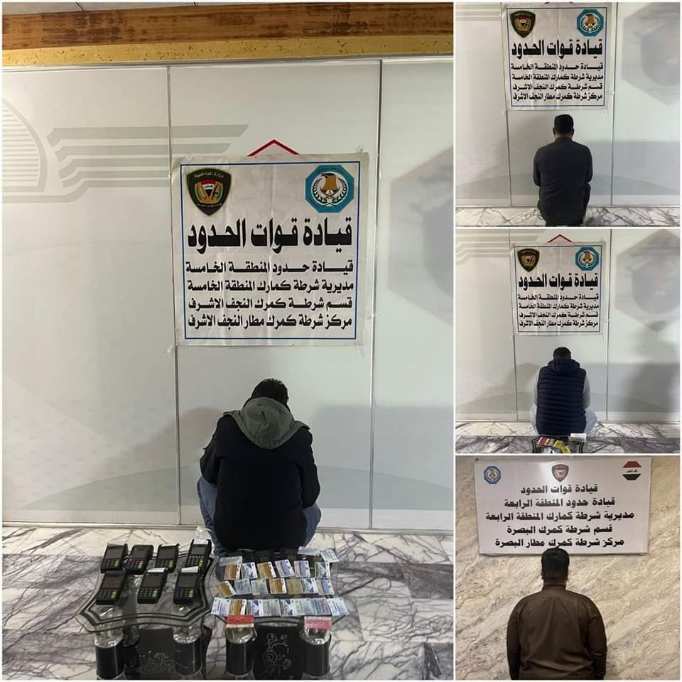 وذكر بيان لقوات الحدود وتلقته "من كربلاءالخبر"، أن "مفارز مركز شرطة كمرك مطار النجف التابع لمديرية شرطة كمرك المنطقة الخامسة (3) تمكنت من ضبط متهمين بحوزتهم (76) بطاقة مصرفية مختلفة الأنواع".
