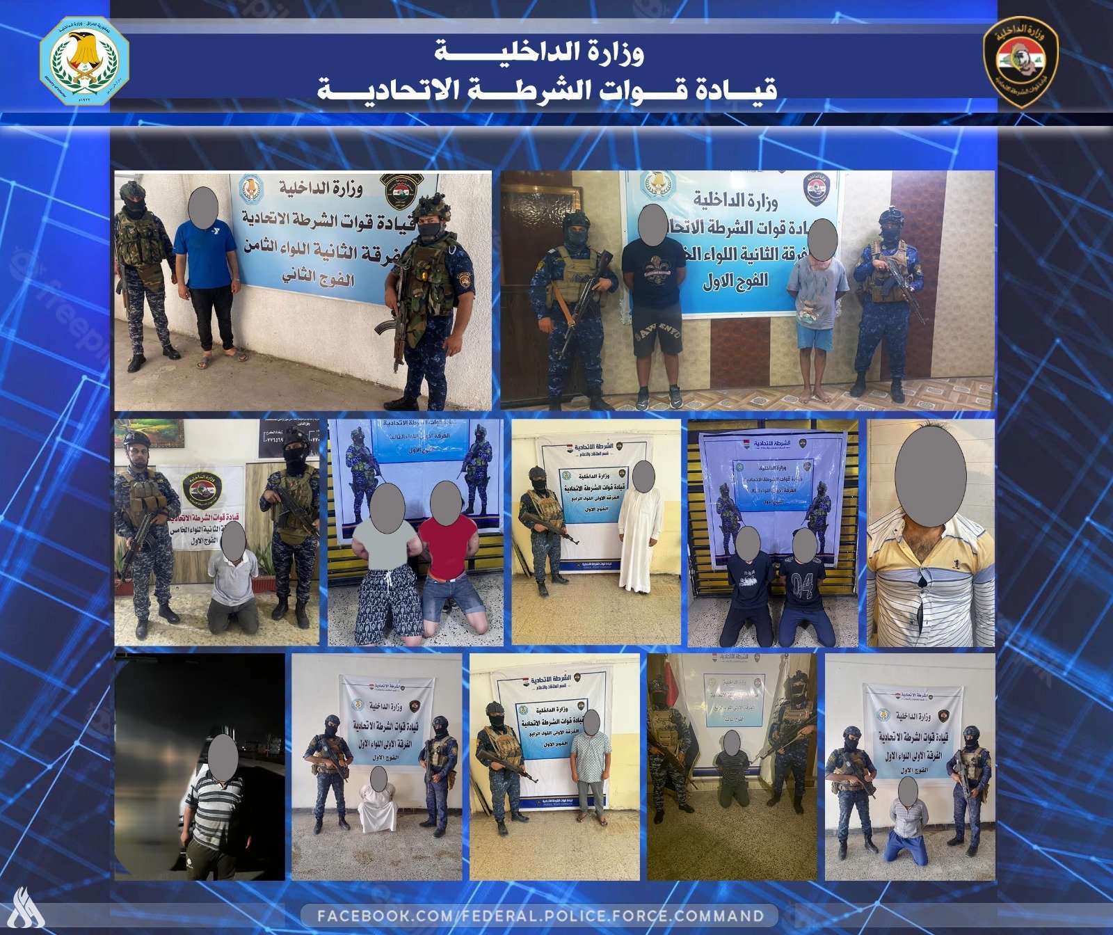 وقالت وزارة الداخلية في بيان تلقته وكالة من كربلاءالخبر : إنه "ضمن الجهد الأمني المستمر الذي تنفذه قطعات الشرطة الاتحادية بالاشتراك مع مفارز الجهد الاستخباري في تنفيذ مذكرات القبض على الخارجين عن القانون ضمن قواطع المسؤولية في مناطق (الشعلة ، الغزالية ، حي الجامعة ، اليرموك ، مدينة الصدر ، الشعب ، الراشدية ، ام الكبر والغزلان) ببغداد، تم إلقاء القبض على 15 متهماً".