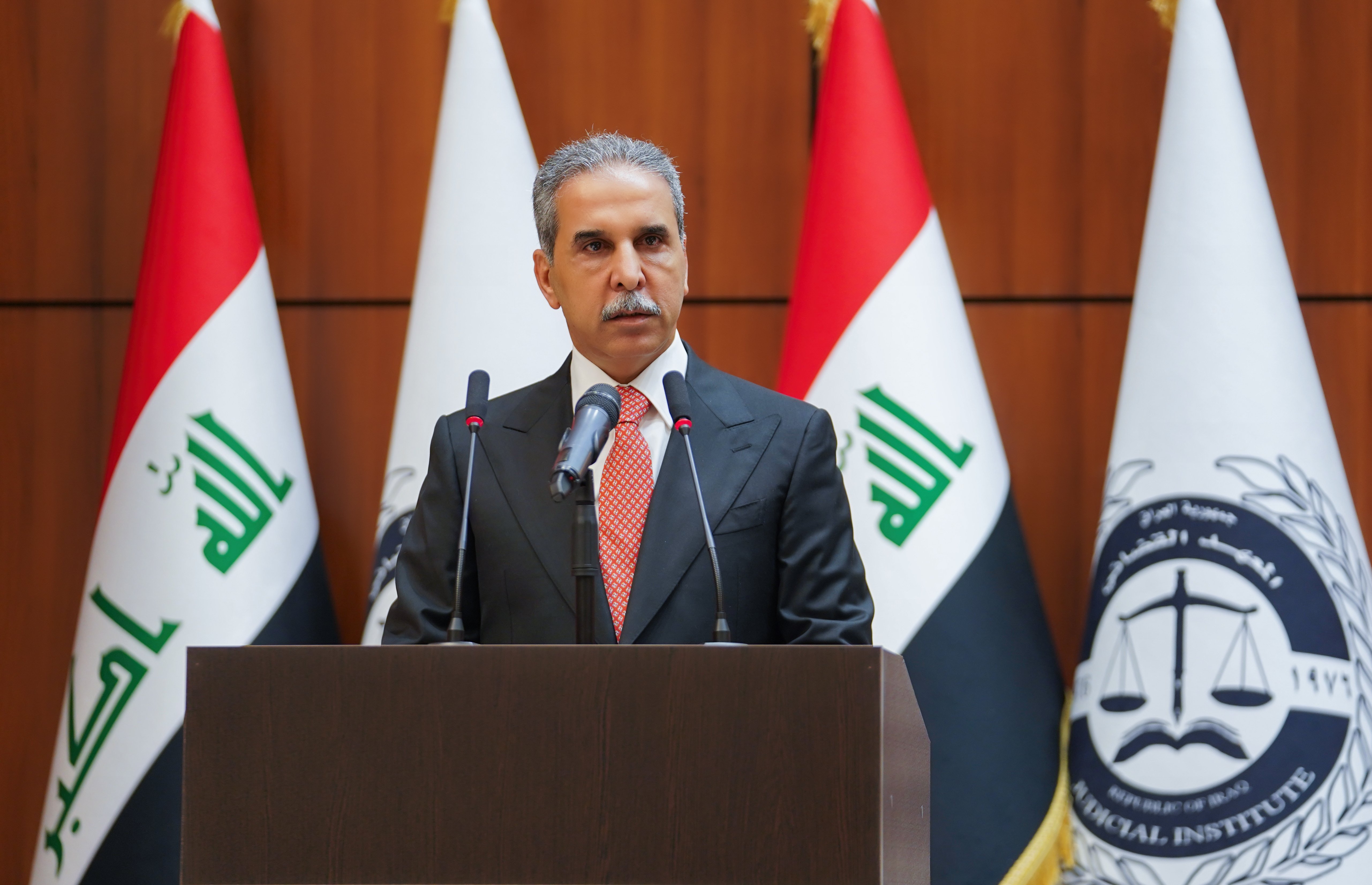 وأضاف: "كنت قد أشرت بمناسبة تخرج الدورة (44) الرابعة والأربعين في العام الماضي الى تبني مجلس القضاء الأعلى استراتيجية زيادة عدد المقبولين للدراسة في المعهد القضائي لرفد القضاء بأعداد كافيةٍ من القضاة وأعضاء الادعاء العام لتحقيق النسبة المقبولة على وفق المعايير الدولية بالنسبة الى عدد سكان البلد مع الحرص في الوقت نفسه على مراعاة معيار النوع في الاختيار".
