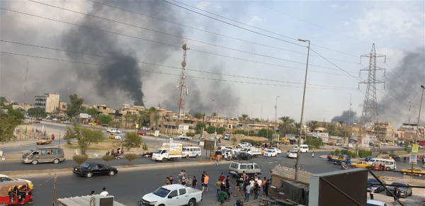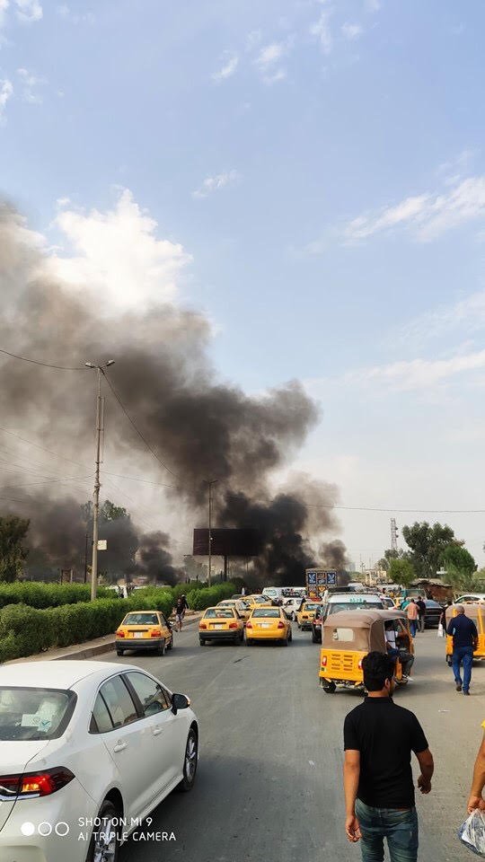 وقال مصدر امني في حديث لـ وكالة من كربلاء الخبر ، إن "اعدة الدخان تصاعدت وغطت مناطق عدة من وسط وشرق العاصمة بغداد نتيجة حرق الاطارات".