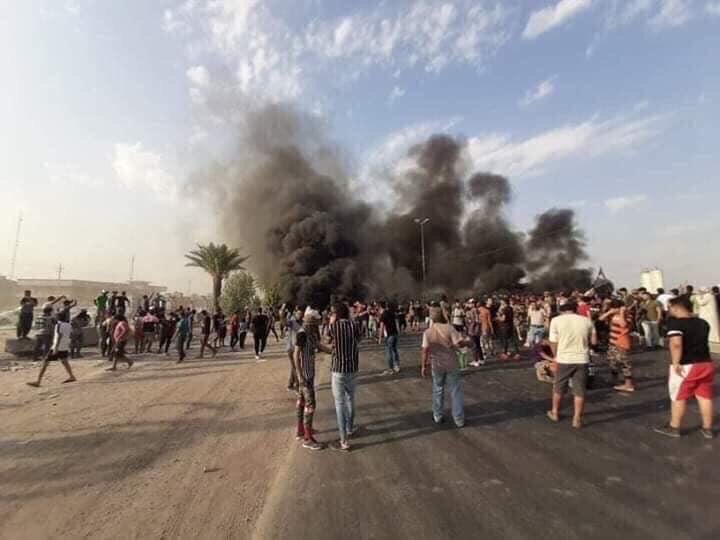 وقال مصدر في حديث لـ من كربلاء الخبر إن "متظاهرين اضرموا النار في الاطارت وسط الشوارع في منطقة الدورة فضلاً عن تقاطع درويش ".