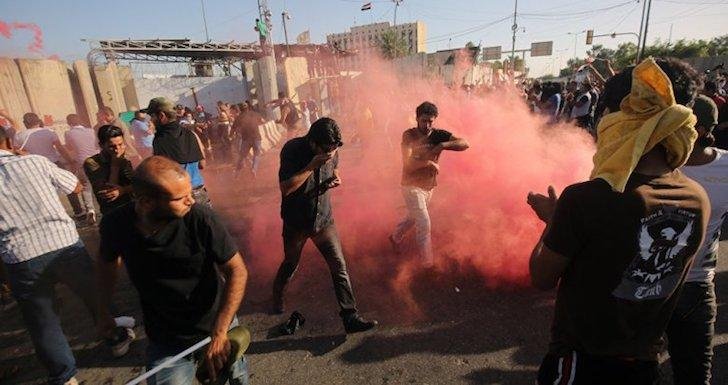 هياج كبير وهتافات وإطلاق مسيل للدموع بكثرة في ساحة التحرير