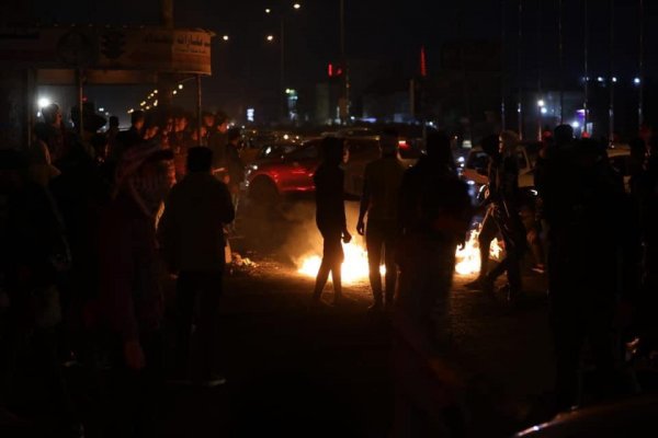 تنشر وكالة من كربلاء الخبر صور ل قيام عدد من المحتجين بحرق إطارات وسط محافظة البصرة