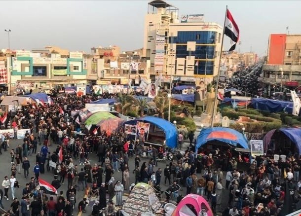 وقال مصدر أمني إن "المتظاهرين في ساحة الحبوبي، رفعوا لفتة يطالبون بتدخل الأمم المتحدة لحمايتهم".