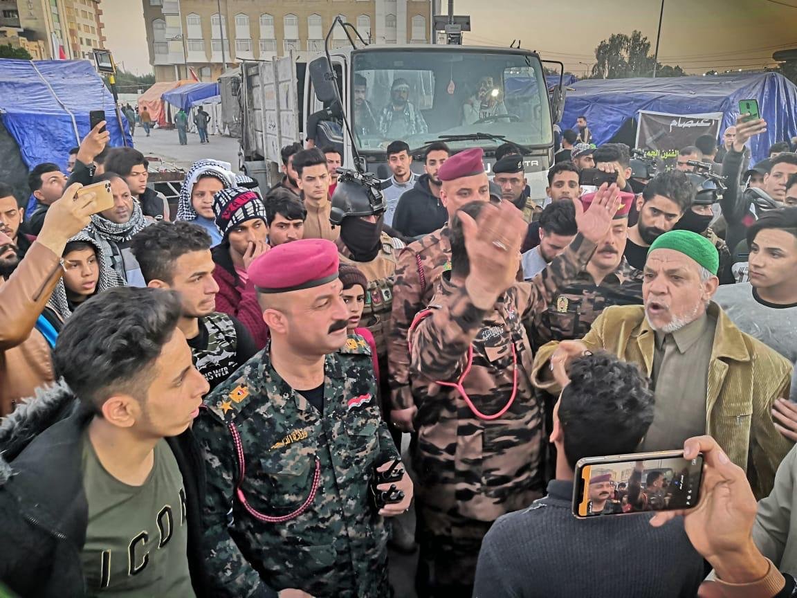 أفاد مصدر أمني، الجمعة، بان القوات الأمنية دخلت مع المتظاهرين إلى ساحة الصدرين في محافظة النجف.