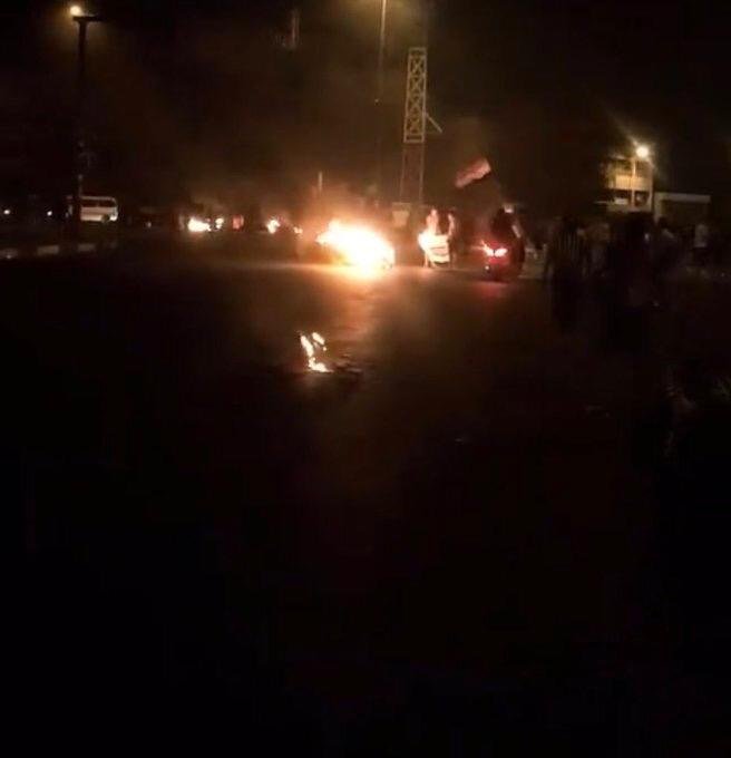 اقدم متظاهرون، الخميس، على حرق الاطارات في ساحة الطيران وسط بغداد.