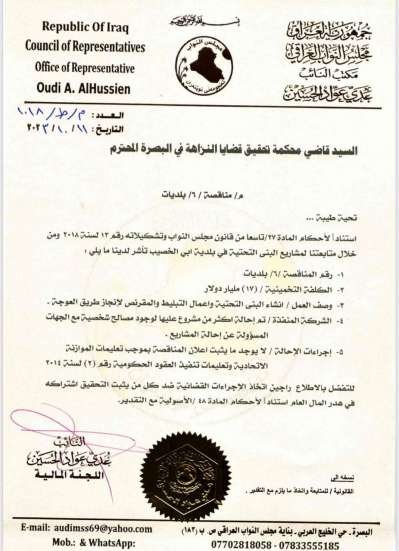 نزاع في البصرة بين مقاول ومدير عام بسبب نصف مليون دولار