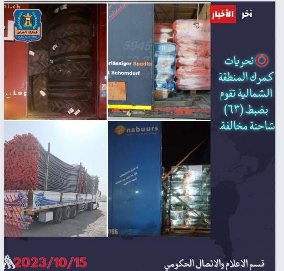 ضبط 63 شاحنة مخالفة لشروط الاستيراد في جمرك المنطقة الشمالية
