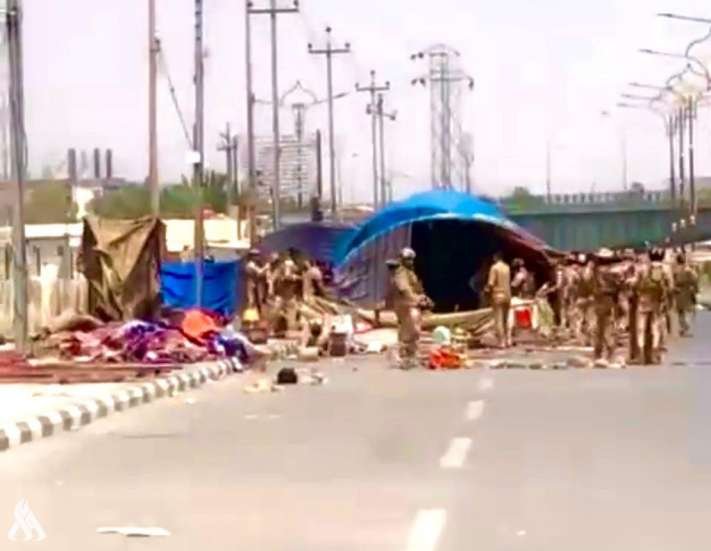 القوات الأمنية ترفع خيم المعتصمين أمام مبنى محافظة ذي قار