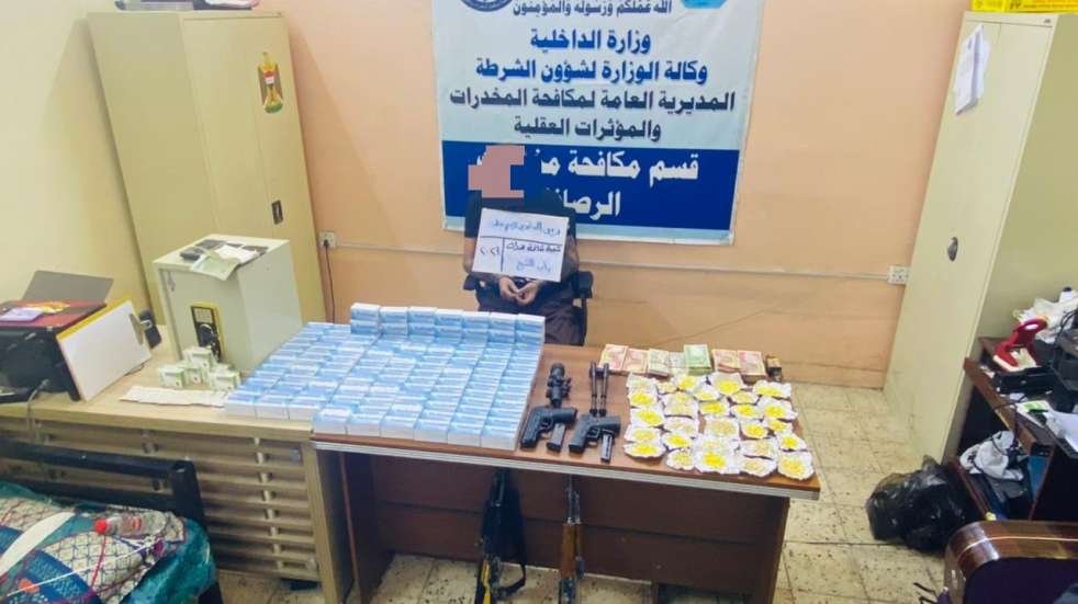 اعتقال "تاجر مخدرات" بحوزته أكثر من 1600 حبة مخدرة وأسلحة في بغداد