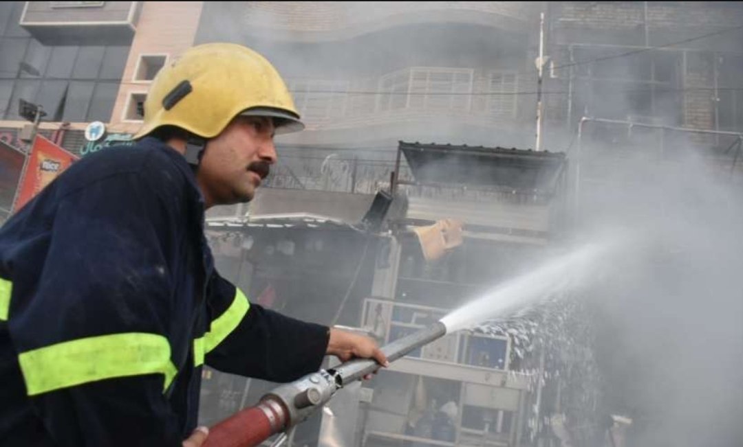 إخماد حادث الحريق في البناية التجارية بشارع فلسطين ببغداد