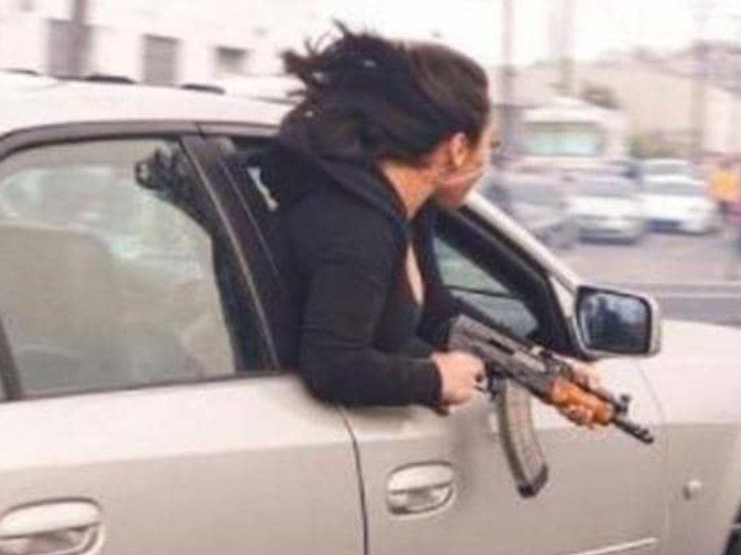 "تحمل كلاشينكوف".. مشهد صادم لامرأة في شوارع كاليفورنيا