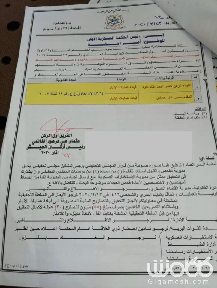 احالة قائد عمليات الانبار الى محكمة عسكرية بتهمة الفساد..( وثيقة )