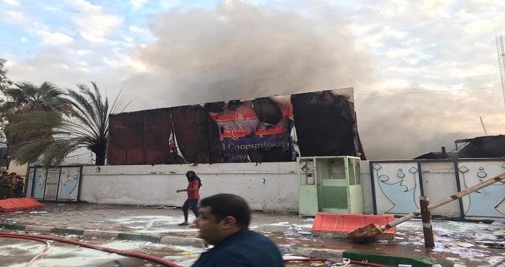 احراق الكرفانات الخاصة بحماية ديوان محافظة البصرة