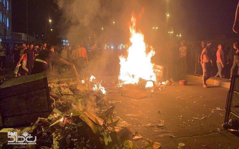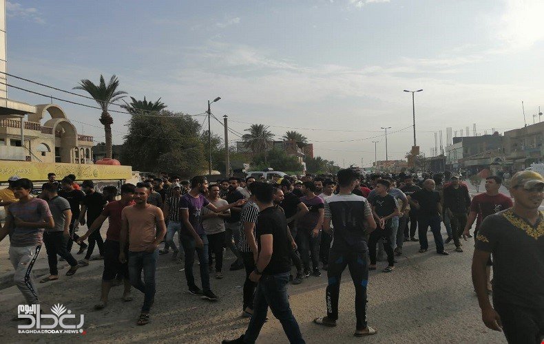 انطلاق تظاهرة في منطقة ابو دشير وغلق الطريق الرابط مع المحافظات الجنوبية