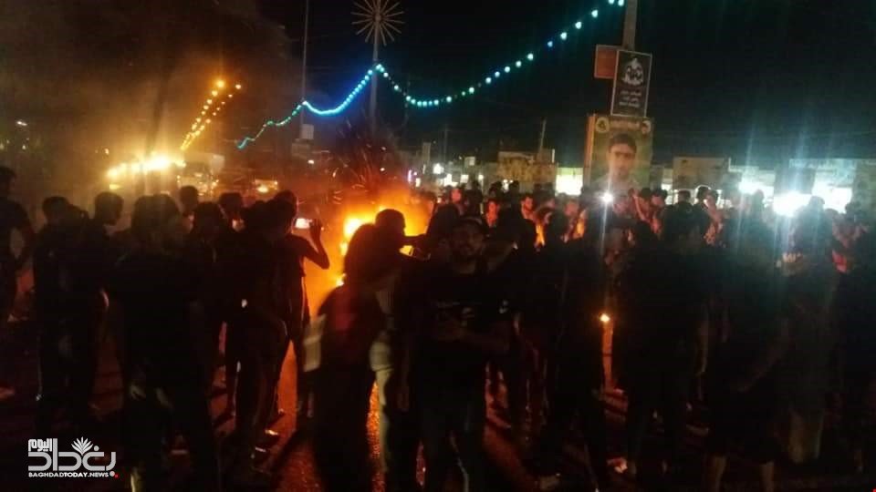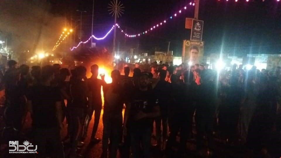 متظاهرون في قضاء الحمزة الشرقي يقطعون الطريق الرابط بين الديوانية والسماوة