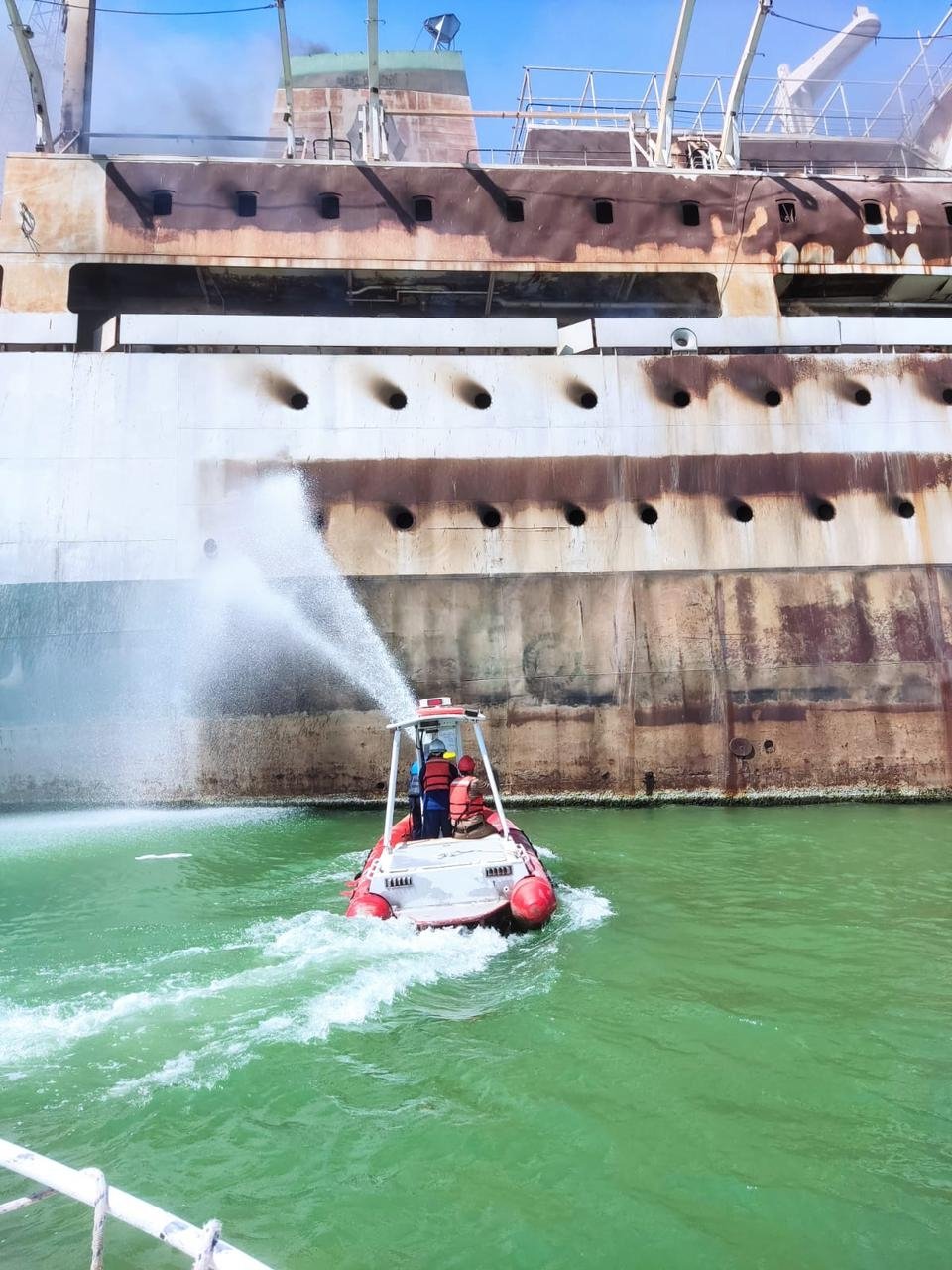 الدفاع المدني تكافح حريقا اندلع بسفينة ابن خلدون في البصرة