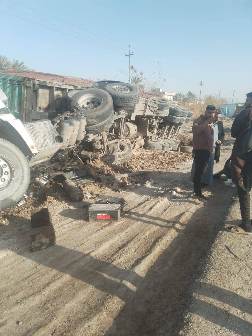 إصابات بانقلاب شاحنة على طريق كركوك-بغداد