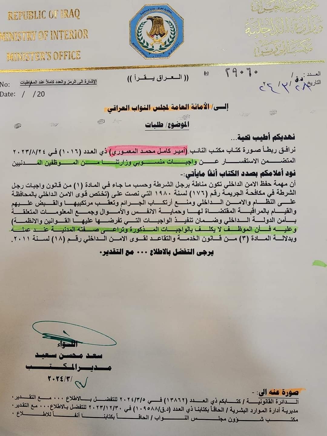بالوثيقة.. وزارة الداخلية تحدد واجبات منتسبيها من الموظفين المدنيين