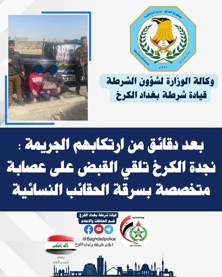 بوقت قياسي.. القبض على عصابة متخصصة بسرقة الحقائب النسائية في الكرخ