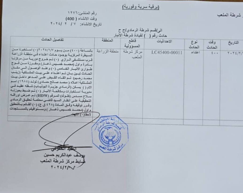 الشمري يأمر بفتح تحقيق بشأن تسريب وثائق من أحد مراكز الشرطة