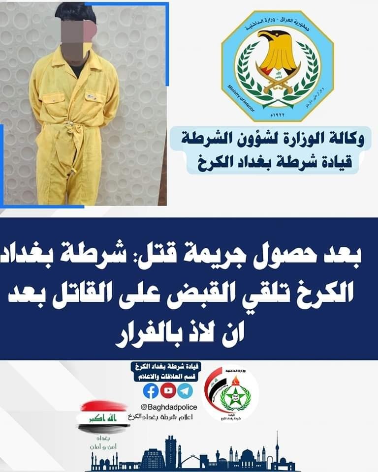 بغداد... القبض على مرتكب جريمة قتل بعد أن لاذ بالفرار