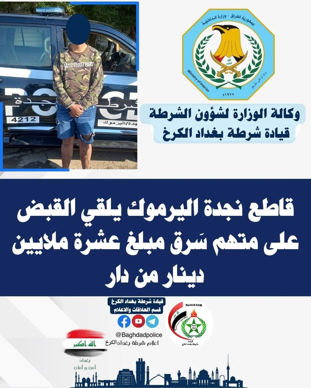 سرق 10 ملايين وأجهزة كهربائية.. تفاصيل اعتقال متهم في بغداد