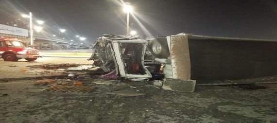 انقلاب مركبة من اعلى جسر وسط البصرة