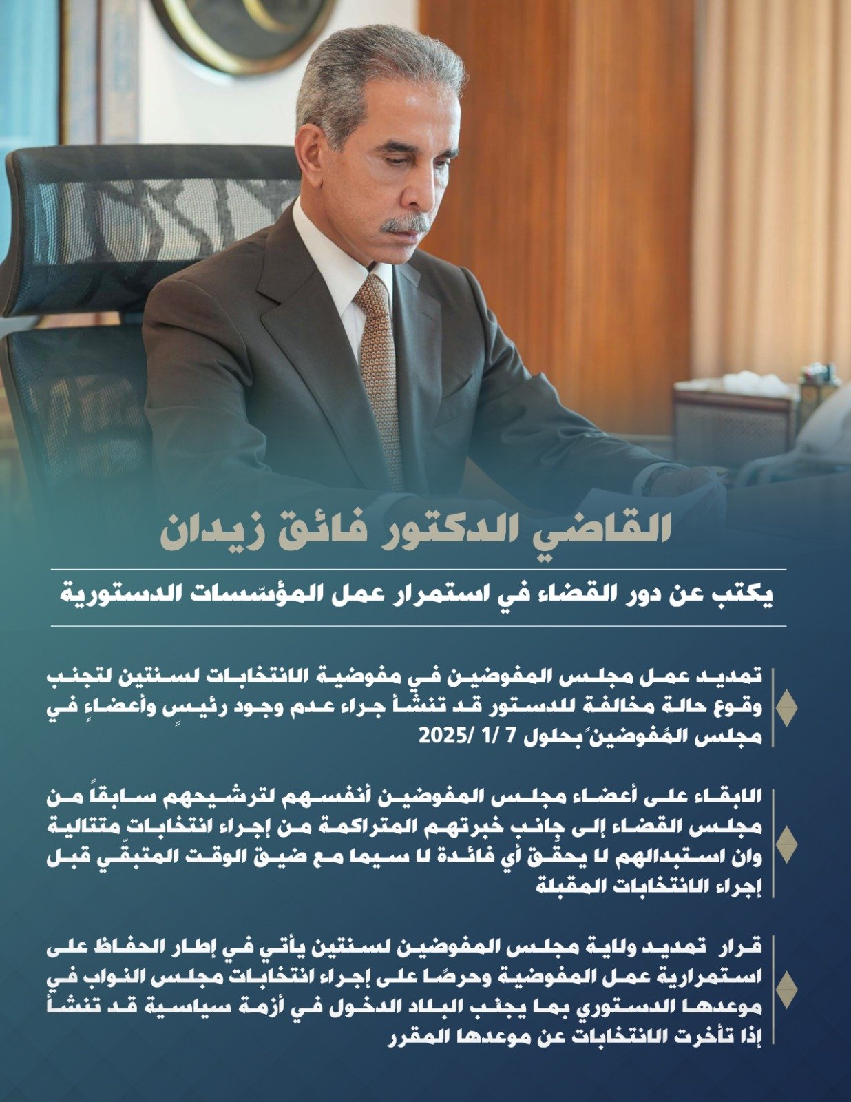 القاضي زيدان: قرار تمديد ولاية مجلس المفوضين يجنّب البلاد الدخول في أزمة سياسية