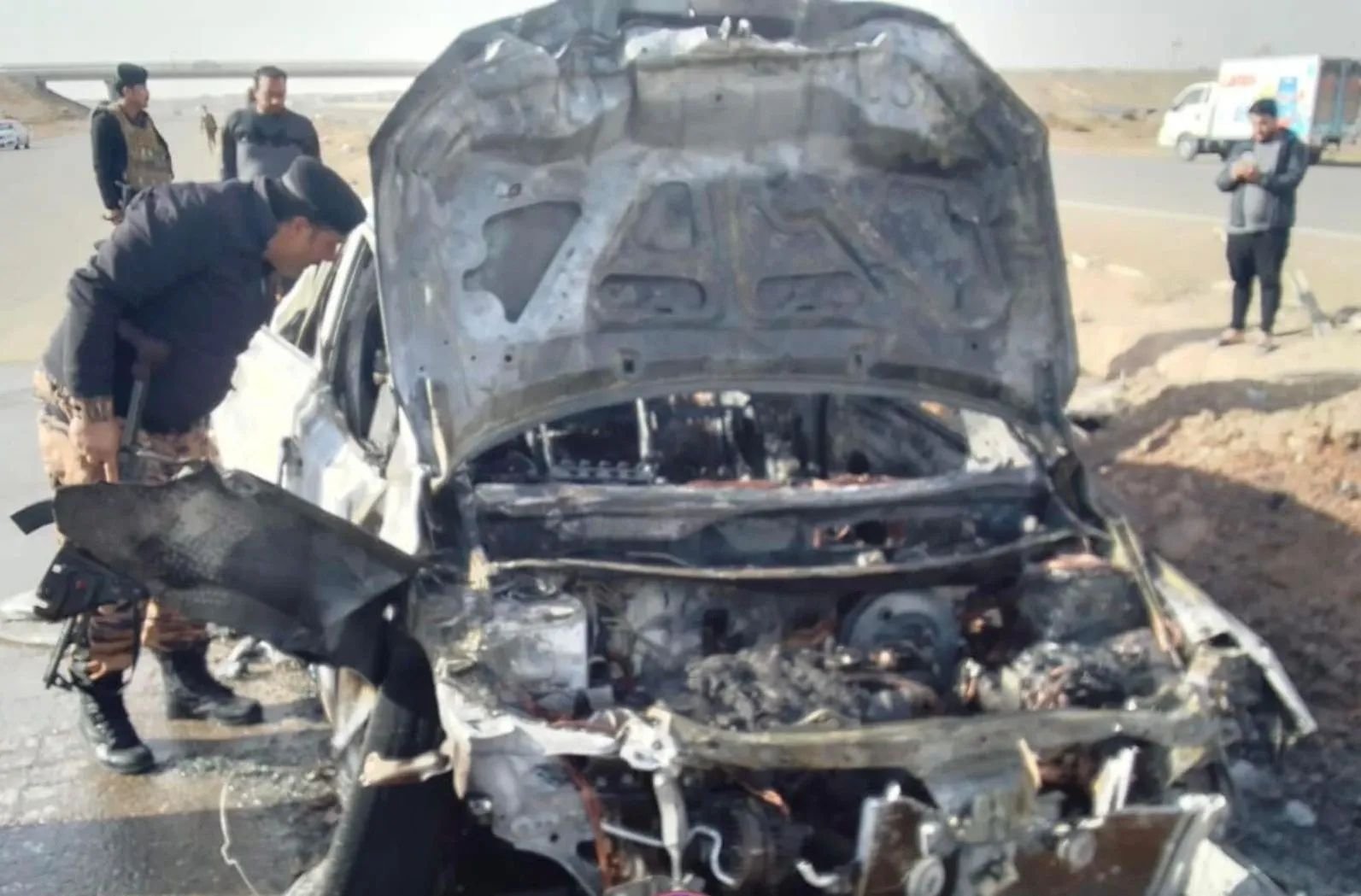 احتراق مركبة "بيك آب" داخل مركز في الكرادة