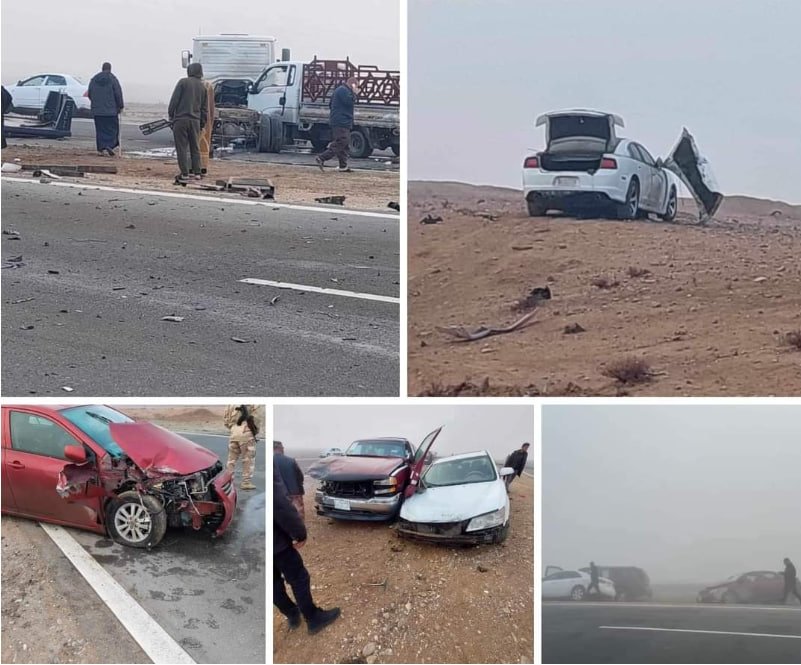 بسبب الضباب.. حادث عنيف بين 14 سيارة على طريق موصل - بغداد