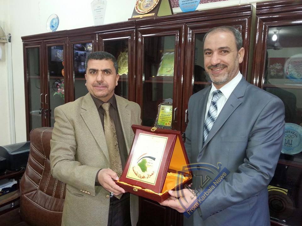 درع مجلس اندية محافظة كربلاء ونادي امام المتقين الى عمادة كلية التربية الرياضية