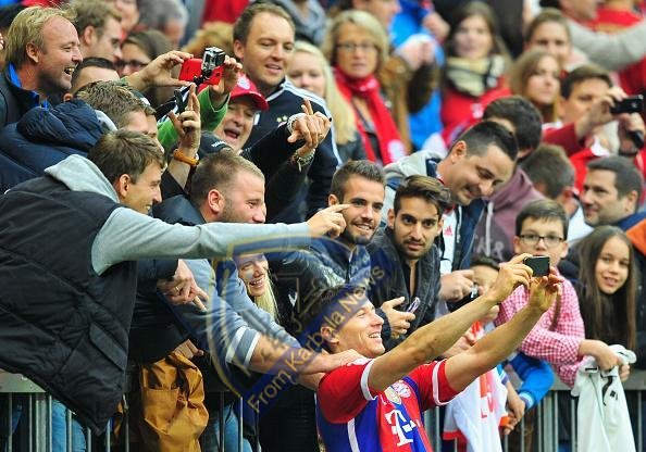 بالصور.. ليفاندوفيسكي يحتفل مع الجمهور بصورة "سيلفي"