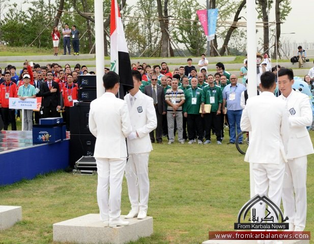 مراسيم رفع العلم العراقي جرت فجرا في القرية الاولمبية بأنشون