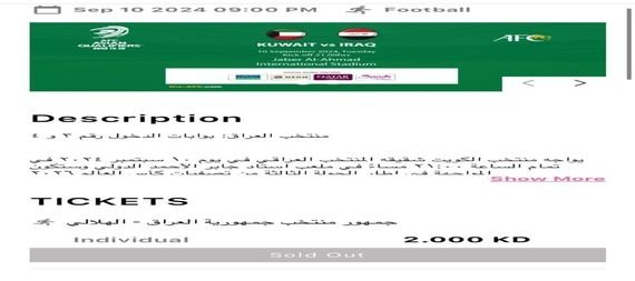 نفاد تذاكر الجماهير العراقية في مباراة الكويت خلال ساعات فقط