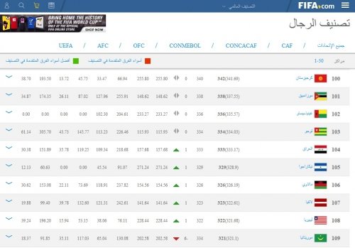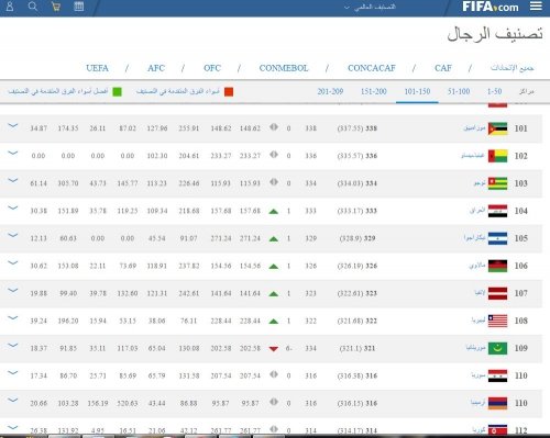 منتخبنا الوطني يتقدم مركزا واحدا بتصنيف الفيفا