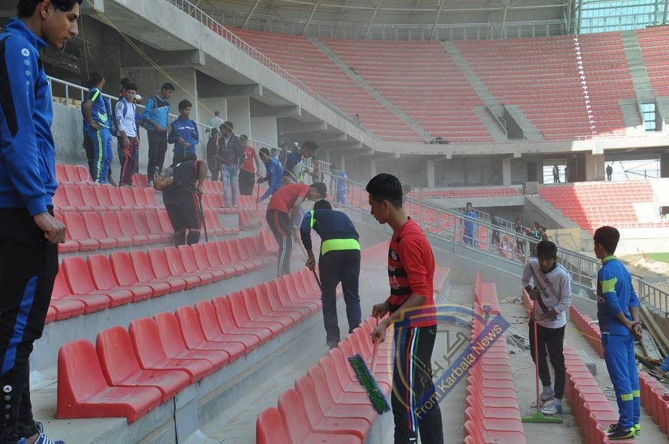 شباب كربلاء يطلقون حملة للعمل الطوعي في ملعب كربلاء الدولي